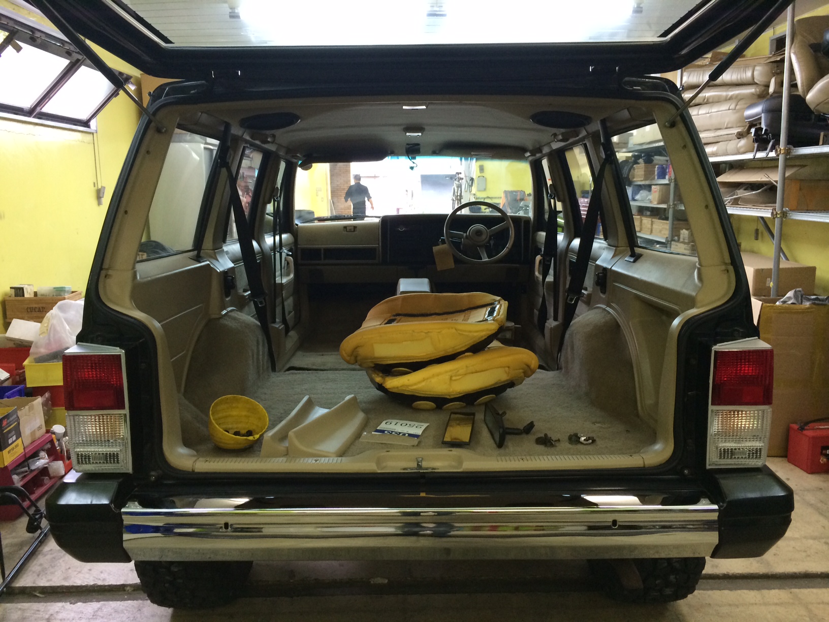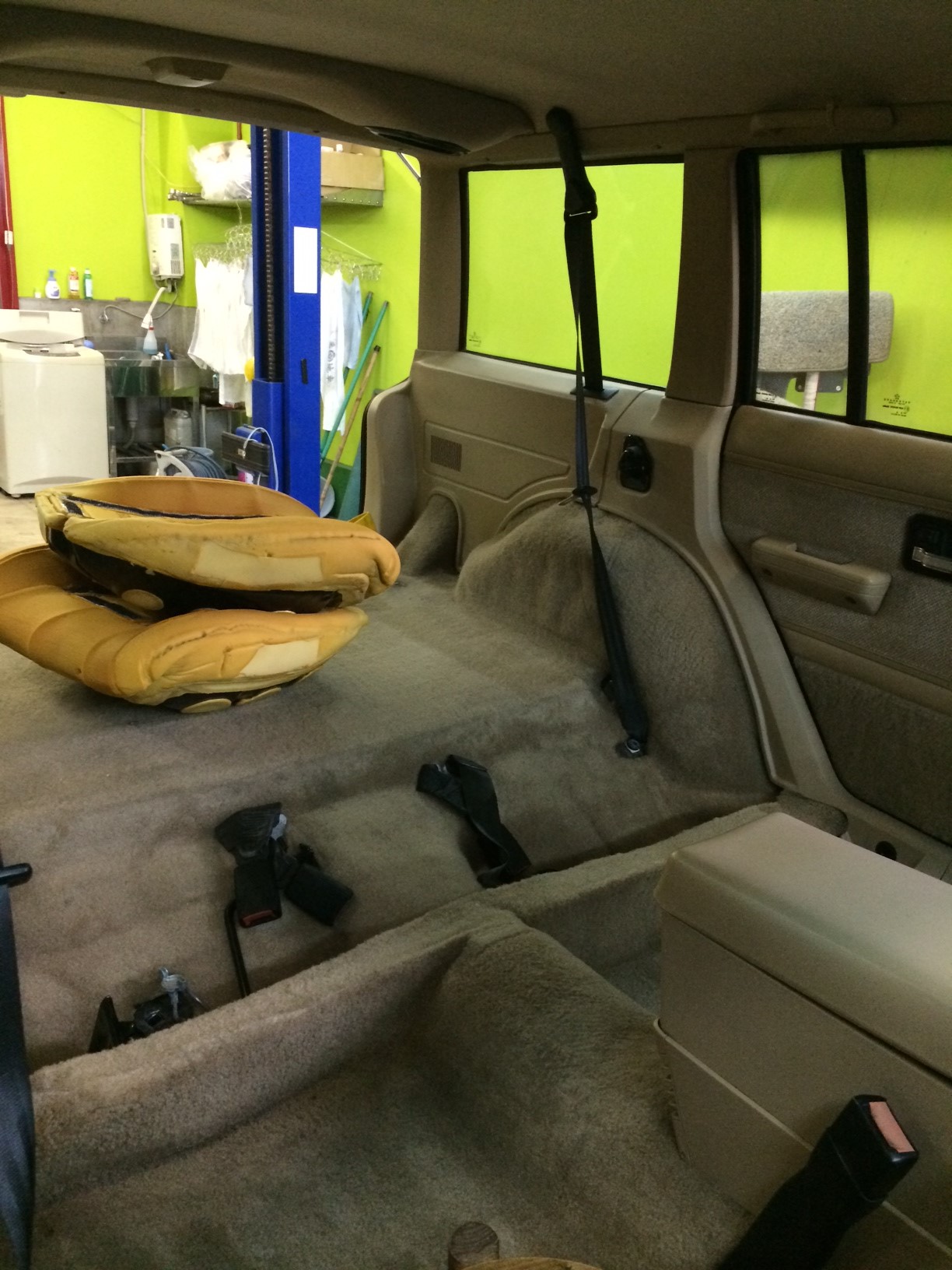本日は販売する車両の内装外装のクリーニング等も終わりシートの取り付けを行っていきます!!
