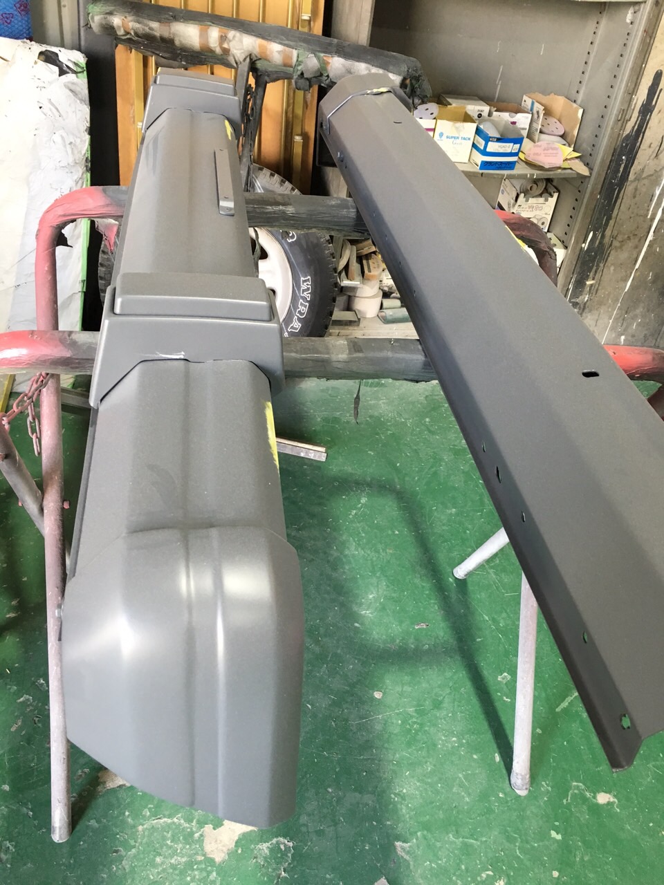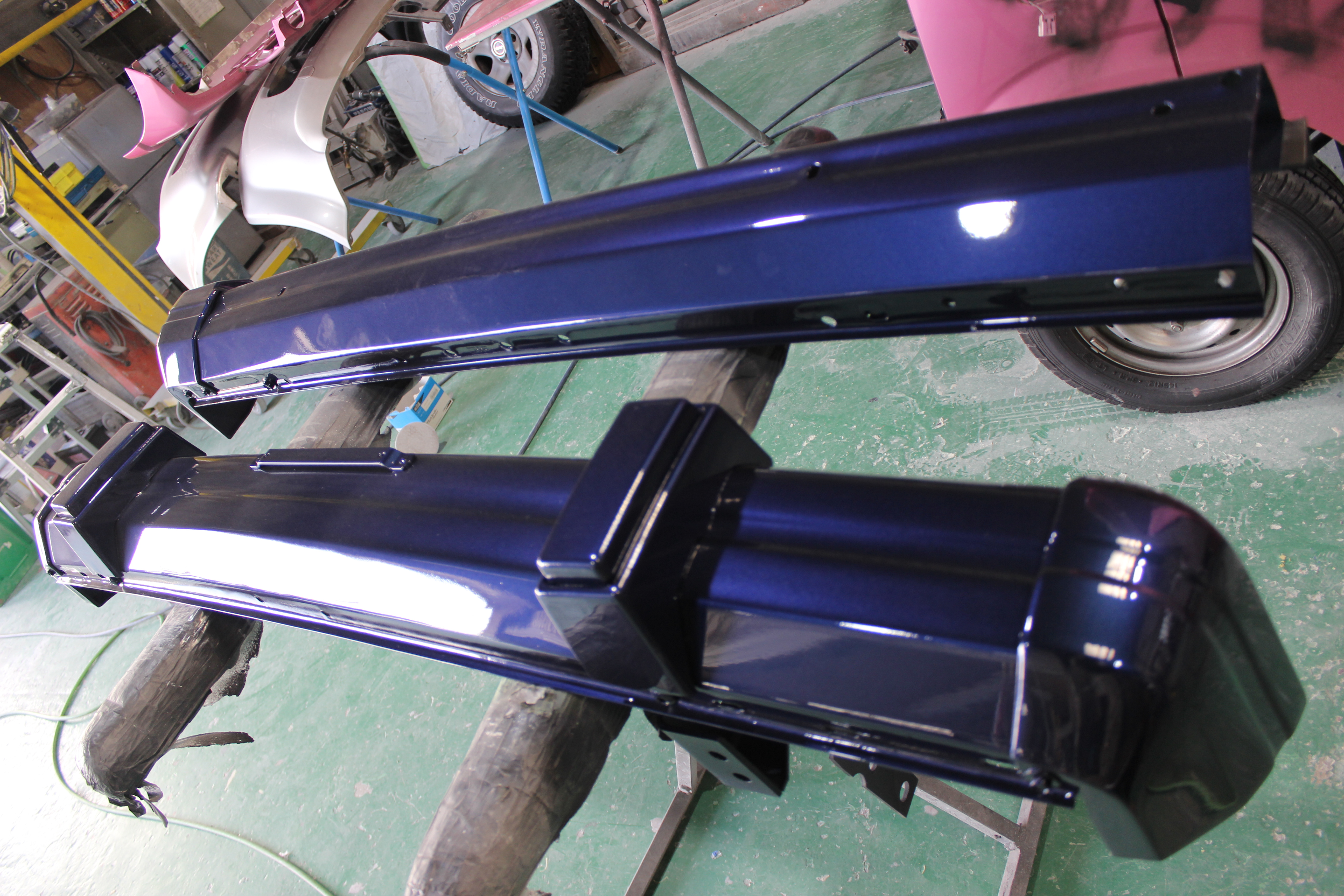 写真は前後バンパーの塗装前と塗装後です~