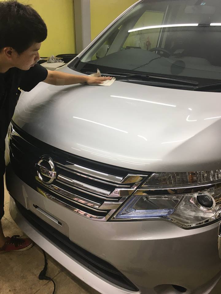 ガラス系ボディーコート剤をスプレーし