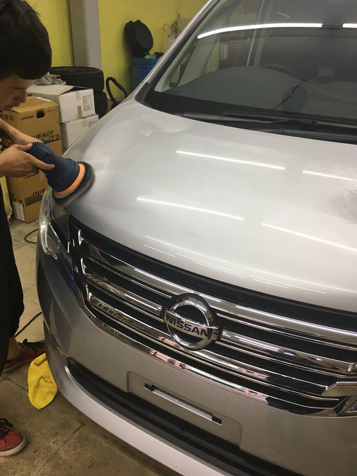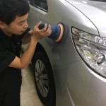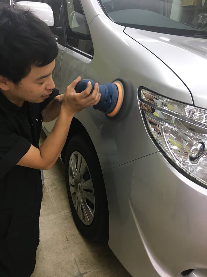 先ず埃などを拭き上げ、研磨剤を付け、ポリッシャーという