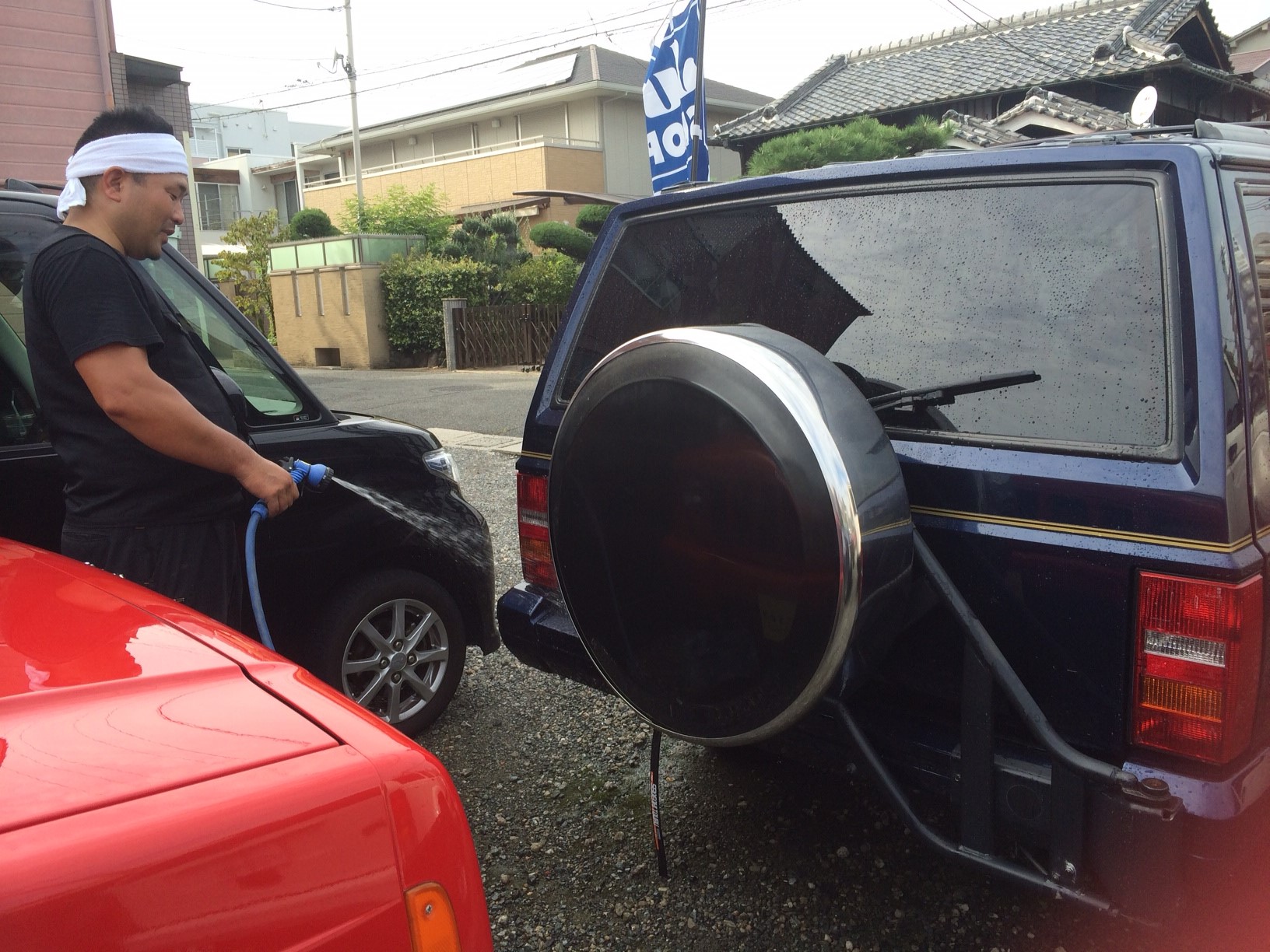 販売車両が展示されている駐車場で洗車作業をしています!