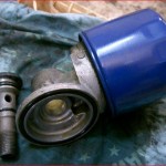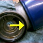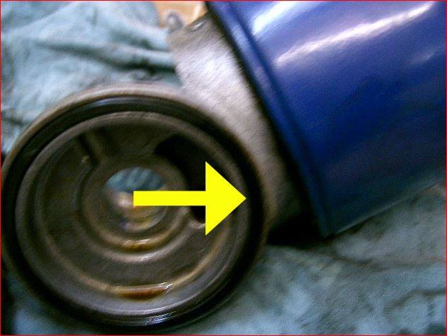 オイルエレメント取付部からよくオイル漏れがあります。エレメントのオーリング(Oリング)と言う部分から漏れてきます。その部分を拡大しました。