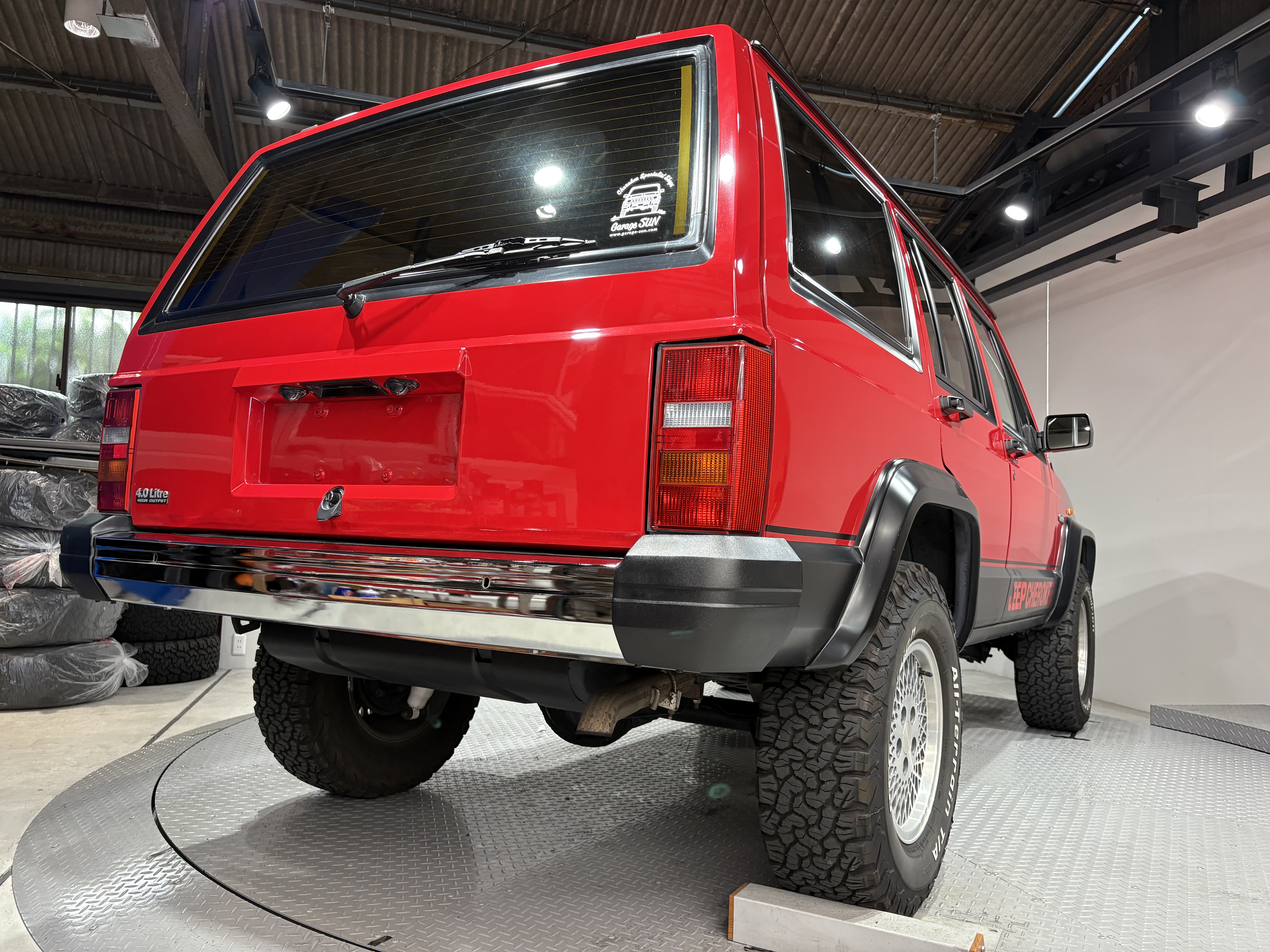 真っ赤なボディにチェロキーステッカーが映える!